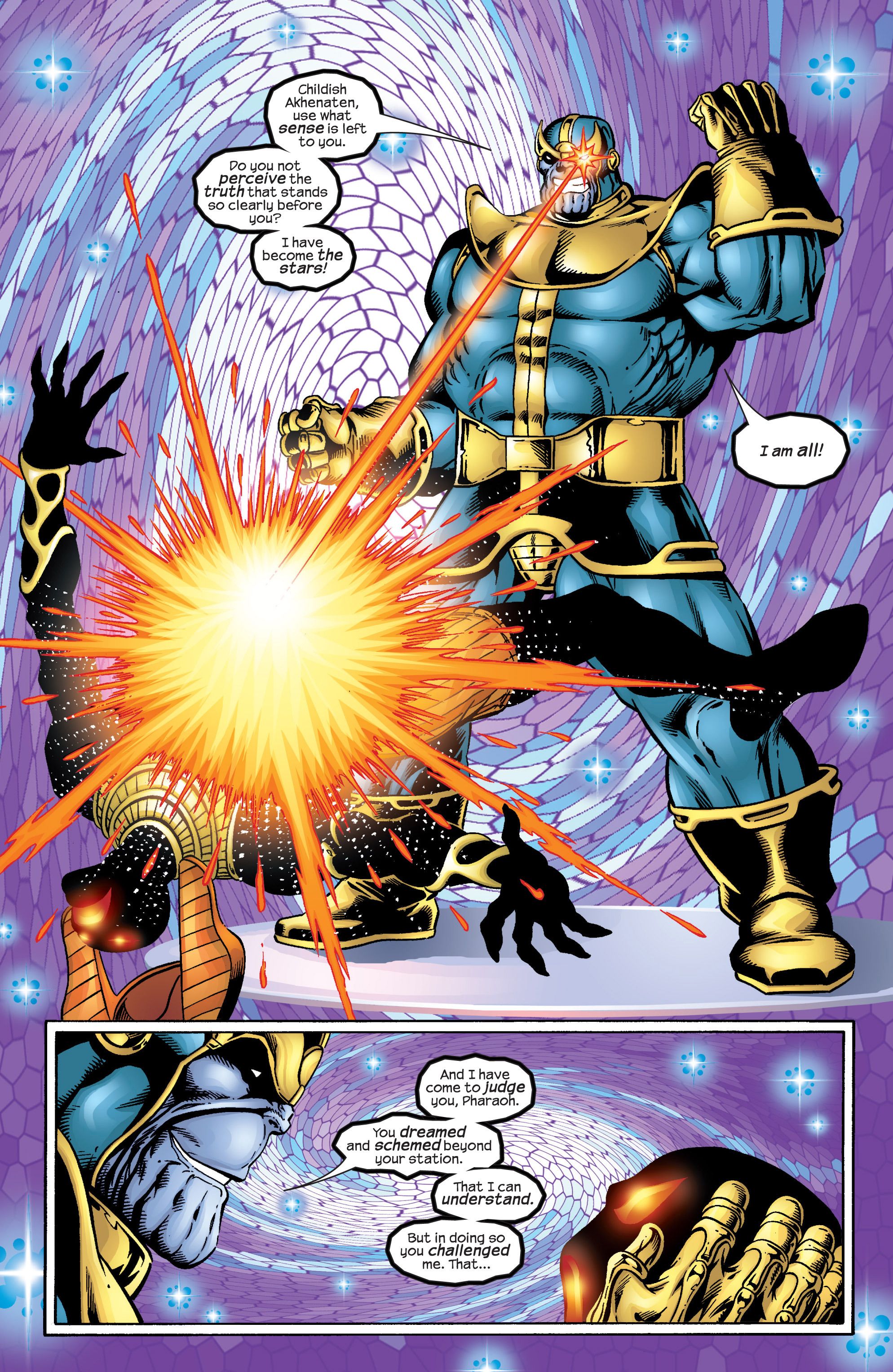 Back in 2003, legendary comic writer and artist Jim Starlin, now best known for his creation of the Mad Titan Thanos, worked on a six-issue mini-series called Marvel Universe: The End. In short, the story details the Main Marvel Universe’s Thanos encountering the Pharaoh Akhenaten who was imbued with the power of Heart of the Universe by the Celestial Order and had targeted the Earth. Unable to defeat him head on, Thanos used the aid of the Defenders and Genis-Vell to stealthily acquire the Heart of the Universe for himself, time-travelling back to erase the Celestial Order and thereby stop the Pharoah’s attack before it began. In doing so, Thanos rendered the reality wherein Akhenaten was abducted by the Celestial Order and all the events that followed it into the divergent Reality-4321 (Marvel Universe: The End #1-#4, Official Handbook of the Marvel Universe A to Z Vol. 12 – Thanos Profile).